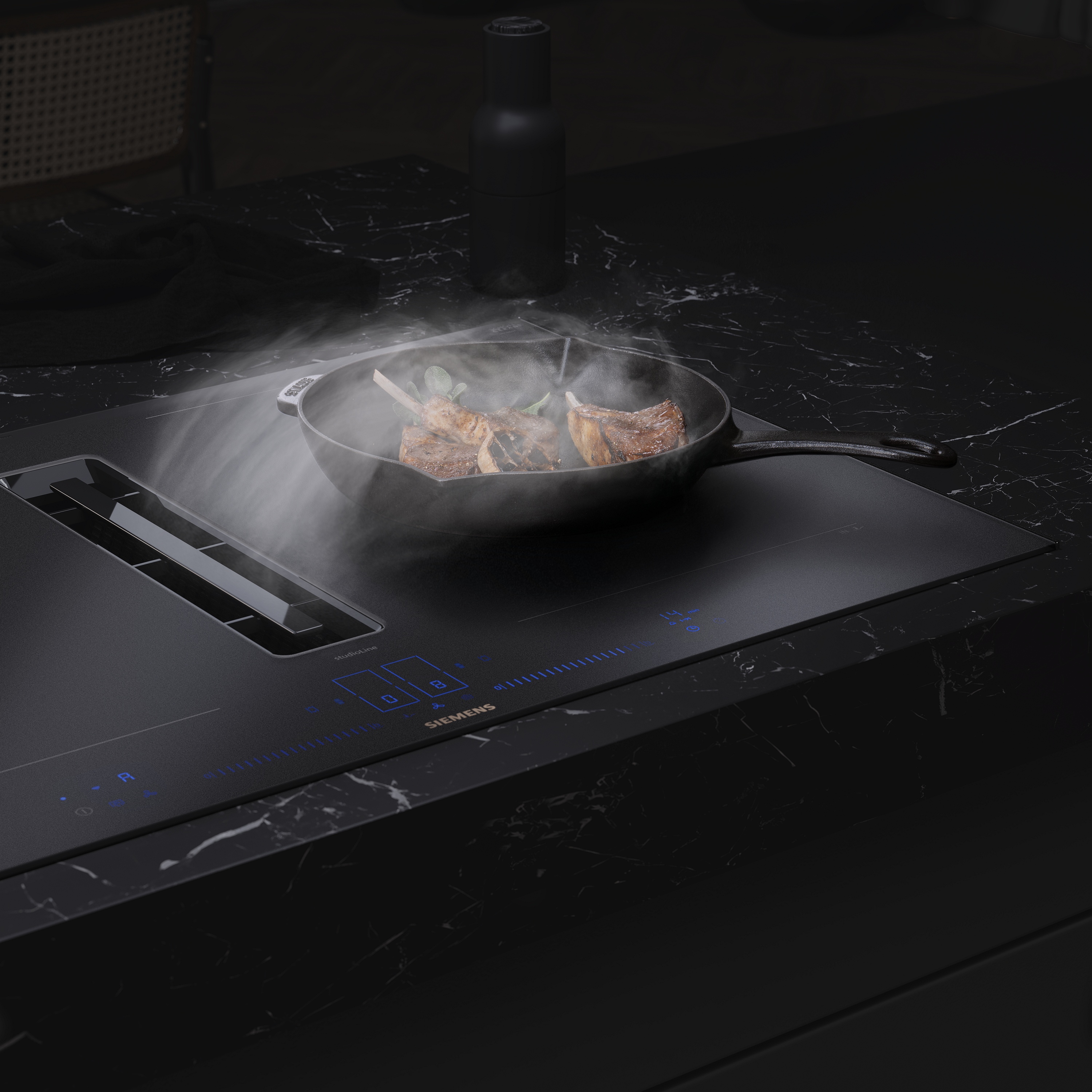 studioLine zeichnet sich durch besondere Ausstattungsmerkmale aus, die es so nur in dieser exklusiven Einbaugeräte-Reihe gibt. Die Farbgebung blackSteel, glänzendes Schwarz, schafft in der Küche eine elegante Atmosphäre. So können alle Geräte der Serie miteinander kombiniert werden und bilden immer einen einheitlichen Look.